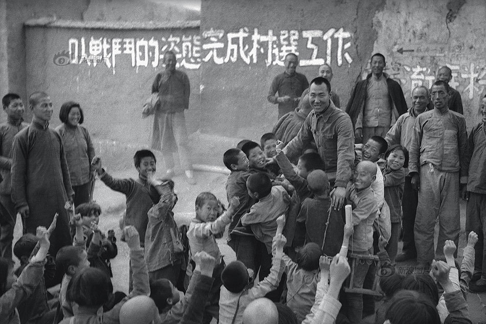 根据中共中央关于抗日根据地政权建设的指示,1940年7月—10月,晋察冀边区进行了大规模的民主选举。图为儿童团举起当选代表。墙上写着“以战斗的姿态完成村选工作”。这张照片的作者叶曼之也是晋察冀画报社摄影记者。摄影:叶曼之