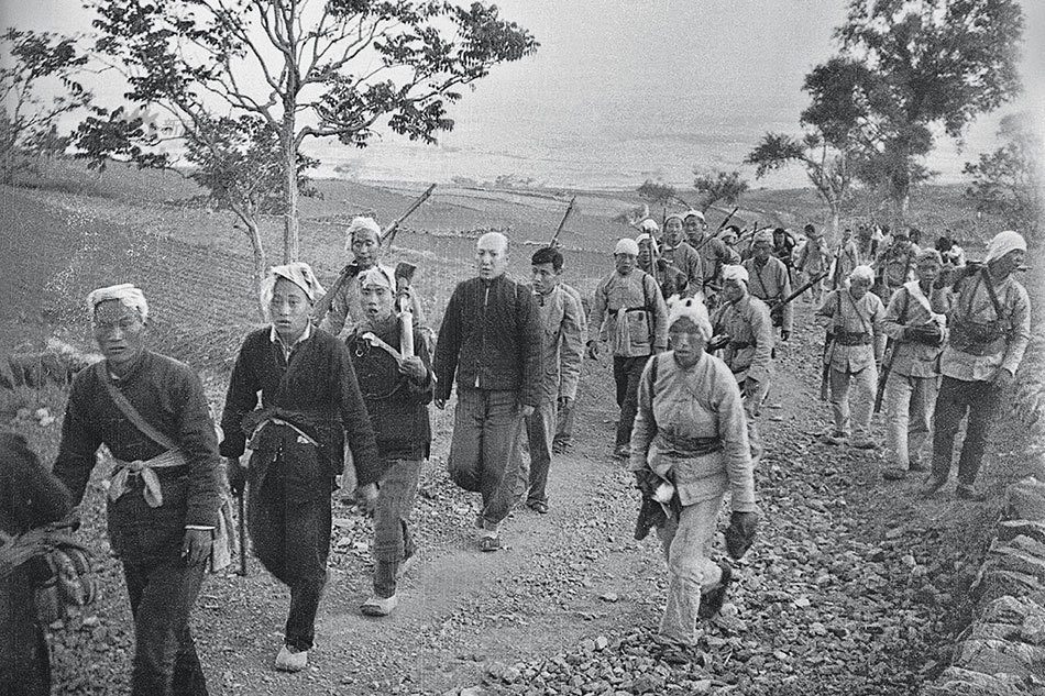 1944年7月,八路军二分区某部攻入山西定襄县城,突袭时城里的伪军正在酣睡,八路军趁伪军满街乱窜之际活捉伪县长王云浩等官佐多名,押解归来。本幅作品的作者蔡尚雄1943年开始在晋察冀画报任摄影记者,建国后曾随军采访朝鲜战场。摄影:蔡尚雄