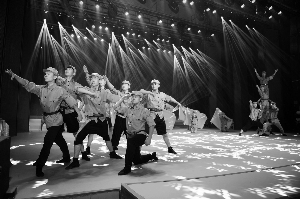 “我们都是神枪手,每一颗子弹消灭一个敌人;我们都是飞行军,哪怕那山高水又深……”当晚8时,记者走进座无虚席的凯旋路剧场,许多观众正和着舞台上的旋律唱着《游击队之歌》,沉浸在表现当年敌后抗日斗争的舞蹈篇章里。“这是一个难忘的夜晚,是一次难忘的演出!我现在特别激动。”和平大戏院总经理王亚男介绍说,抗战胜利是我们中华民族在近代以来反侵略历史上的第一次全面胜利,作为长春市民营文化企业和特色文化品牌,和平大戏院应该在这个时候发挥出创作团队、表演团队的优势,担负起社会责任,为纪念抗战胜利70周年做点儿事。熬得两眼通红、看上去明显睡眠不足的王总告诉记者:“没有人要求我们做,一切都是我们自愿、自发和自觉的,从查阅资料、编创剧本、制作服装道具、调配灯光音响到调动演员团队,每晚加班加点排练……全体演职人员上下一心,不懈努力,不到一个月,这台节目就出炉了!从今晚首场演出的效果看,我们的努力没有白费,你看,观众朋友们非常喜欢我们的节目。”