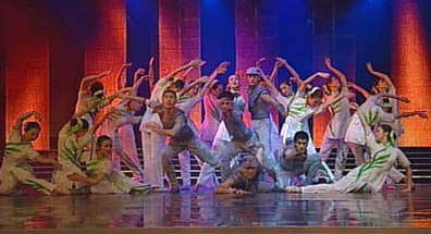 再看,在芦花如云、苇叶似荫的遮掩下,伤愈的战士穿行而出,手臂似军刀挥舞,目光如弹弧远扬,蓬勃的生机、高昂的斗志、必胜的信念在母性的芦荡蔓延、扩张。这一充满英雄主义激情的舞段,明显地凝结、浓缩了思想的力量,喻示着人民哺育的军队无坚不摧,战无不胜。