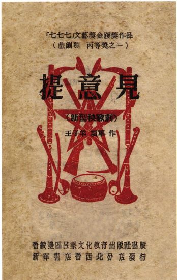 王子羊、项军编剧,晋绥边区吕梁文化教育出版社出版的新型秧歌剧《提意见》剧本