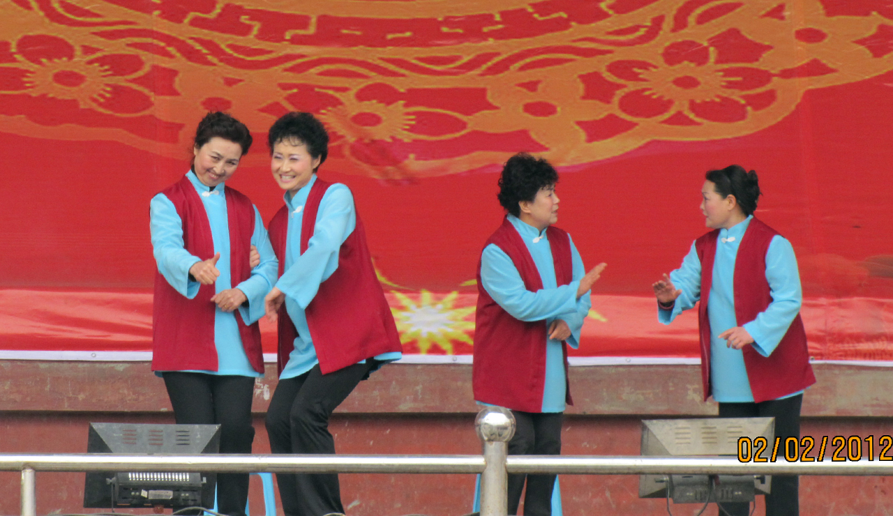 人们把载歌载舞的集体性的广场表演统一叫做“把式舞”。把式舞队由一男一“女”串联而成,舞队演员从头至尾依次称呼是:头把式、头旦、二把式、二旦、三把式、三旦……把式舞演员上至六旬老翁下至十岁孩童,大致是只要会跳“凤凰三点头”的男子都可参与其中。