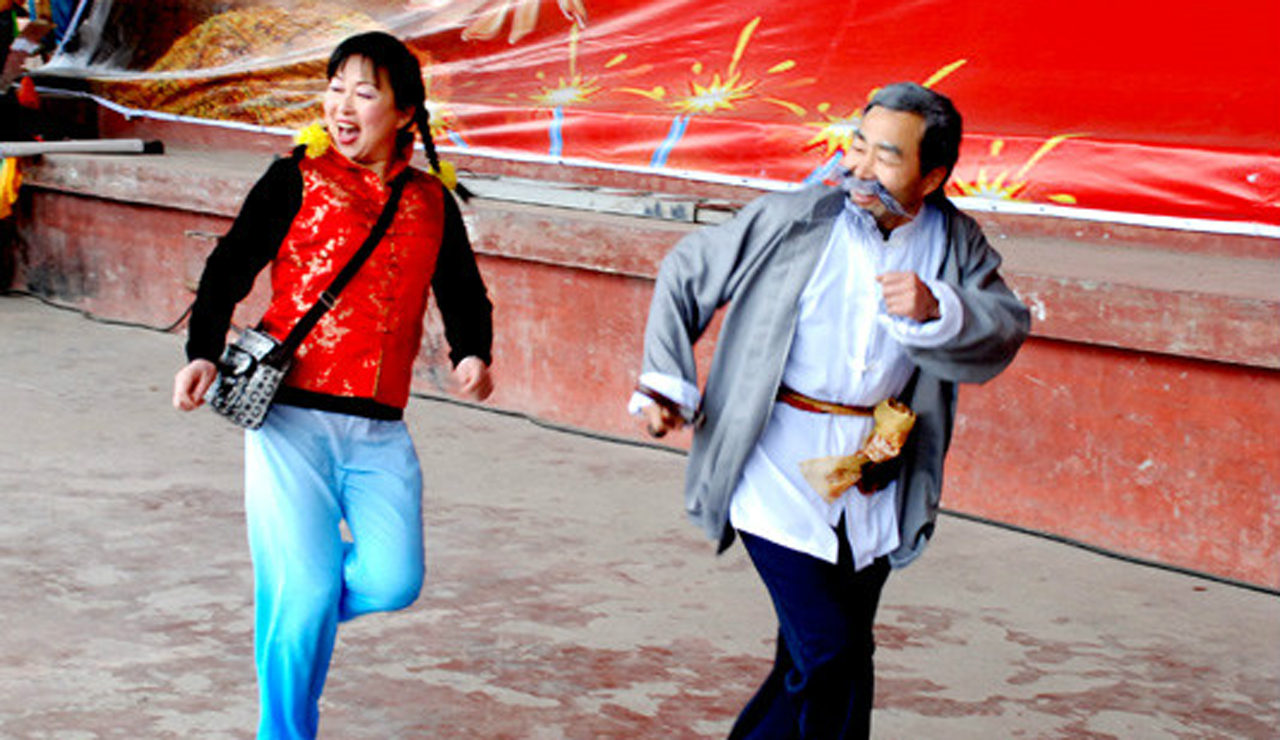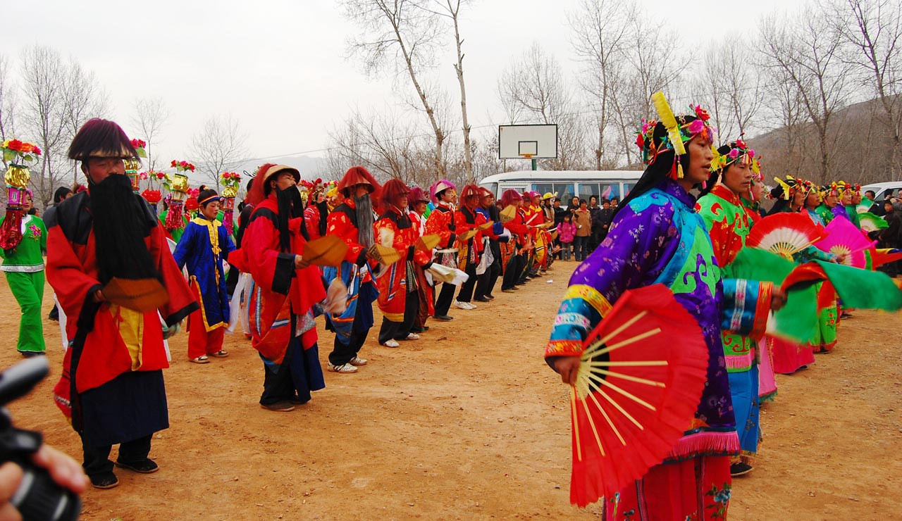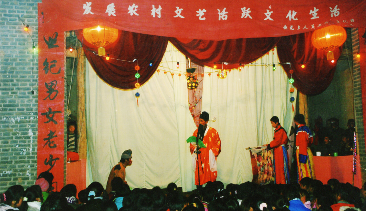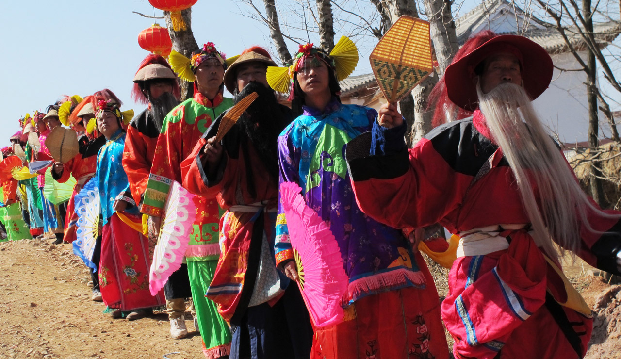 “过场”演出在“故事”的展开中起到的是衔接、纽带的作用。这个“纽带”因为是程式化的表演,所以,在多年的传承中农民演员对其能熟记于心,这样一来“故事”的排演就不费事。