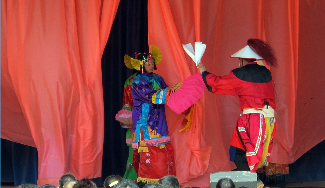 作为妙趣横生的夹白歌舞,“开门帘”是高山戏“戏”前的必须演出,这一程式化的演出较明显地呈现了“舞”向“戏”衍变的历史遗痕,是高山戏最主要的表演程式之一。