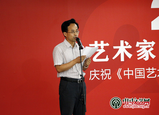 7月17日,庆祝《中国艺术报》创刊20周年展览在中国文艺家之家开幕。中国艺术报社副总编辑康伟主持展览开幕式。中国文艺网 高晴摄