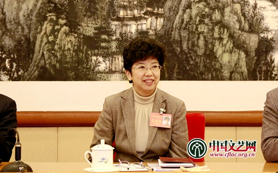 第十次全国文代会代表、中国文联党组书记、副主席赵实在分组会议上发言。中国文艺网 周春桃 摄