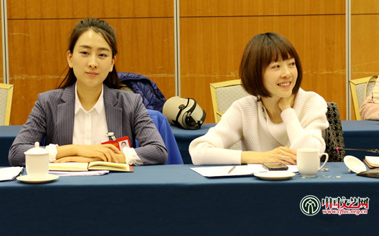 陈鲁豫代表和马苏代表倾听发言 中国文艺网 周娜 摄