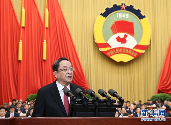3月3日,中国人民政治协商会议第十二届全国委员会第四次会议在北京人民大会堂开幕。这是俞正声代表政协第十二届全国委员会常务委员会作工作报告。新华社记者 谢环驰 摄