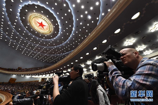 3月5日,第十二届全国人民代表大会第四次会议在北京人民大会堂开幕。这是记者在人民大会堂内采访。新华社记者 杨宗友 摄