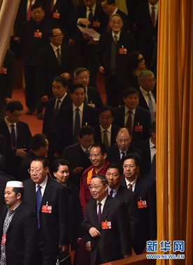 3月14日,全国政协十二届四次会议在北京人民大会堂举行闭幕会。这是全国政协委员步入会场。新华社记者 李鑫 摄