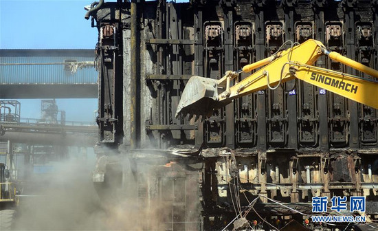 鞍山钢铁集团公司淘汰落后产能,将建于80年代的4座4米焦炉和2座5米焦炉全部淘汰并开始拆除(2014年9月10日摄)。当时间的指针指向又一个五年开局,全面建成小康社会迈入决胜阶段。 2016年全国两会召开在即。国家的宏伟愿景,人民的小康期盼,交响于3月的北京。未来五年,中华民族将穿越萦绕千年的小康梦想。站在新的历史起点,一幅亿万人民勠力同心、奋力迈向新征程的壮丽图景即将展开。 新华社记者 杨青 摄