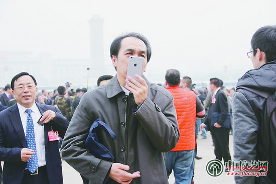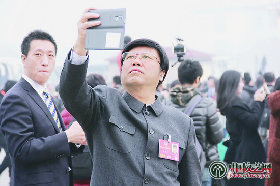 3月3日,中国人民政治协商会议第十二届全国委员会第四次会议在北京人民大会堂开幕。文艺界委员认真赴会履职。会议期间,他们将积极建言献策、参政议政。手机无处不在的时代,政协委员孔维克(上图)、徐翔(下图)进入会场前不忘拿起手机自拍或交流。