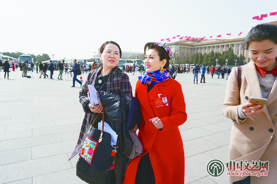 全国人大代表、中国文联副主席迪丽娜尔·阿不都拉接受记者采访。本报记者 怡梦 摄