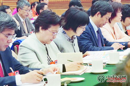 3月8日是国际劳动妇女节。连日来,在全国两会现场,随处可见女代表委员或认真履职、或接受媒体采访的身影,以靓丽的风景撑起“半边天”。全国人大代表蒋婉求(上图)、全国政协委员刘兰芳(下图)正在认真审查、讨论会议文件。