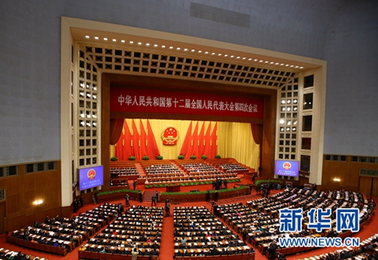 3月13日,十二届全国人大四次会议在北京人民大会堂举行第三次全体会议。 新华社记者 丁海涛 摄