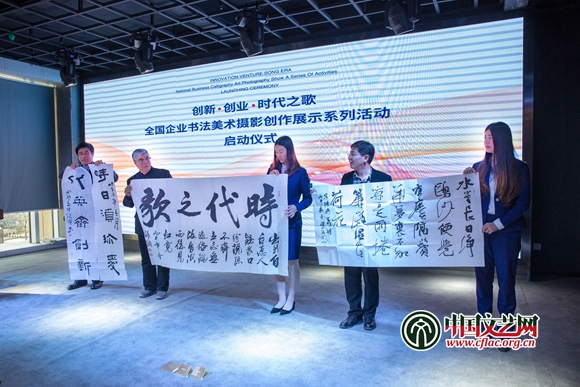 启动仪式上,著名书法家张飙、张继、于恩东展示为此次活动创作作品 姚炜 摄