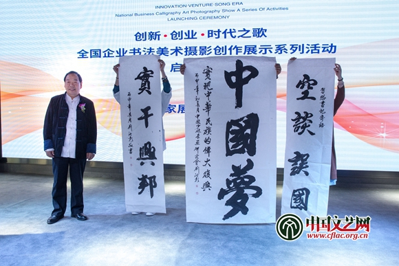 启动仪式上,中国少林书画研究会常务副会长兼秘书长荆汝彭展示作品 姚炜 摄