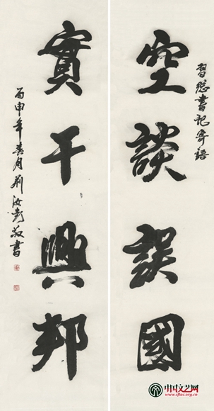 荆汝彭行书作品《空谈误国,实干兴邦》