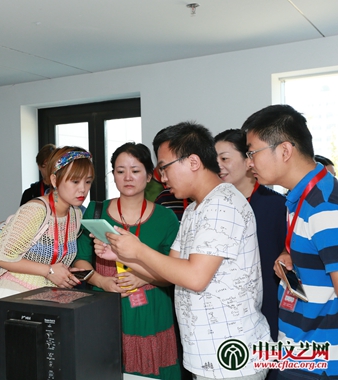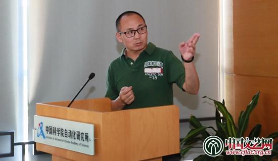 9月8日上午,首届全国中青年网络文艺人才研修班组织学员进行现场教学,通过参观中国科学院自动化所科学艺术中心重要项目,深入了解虚拟现实与艺术发展。现场教学期间,中国科学院科技艺术中心主任张之益还以“拥抱信息可视化时代的中国动画”为题为学员授课。