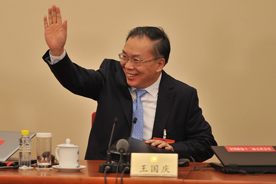 3月2日,全国政协十二届五次会议新闻发布会在北京人民大会堂举行。图为大会新闻发言人王国庆。