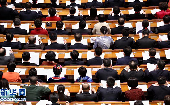 3月5日,第十二届全国人民代表大会第五次会议在北京人民大会堂开幕。这是代表们在认真听会。 新华社记者 金立旺 摄