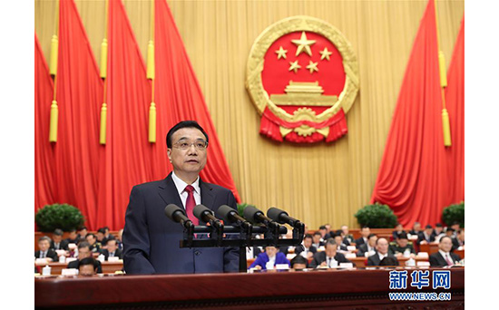 3月5日,第十二届全国人民代表大会第五次会议在北京人民大会堂开幕。国务院总理李克强作政府工作报告。 新华社记者 庞兴雷 摄