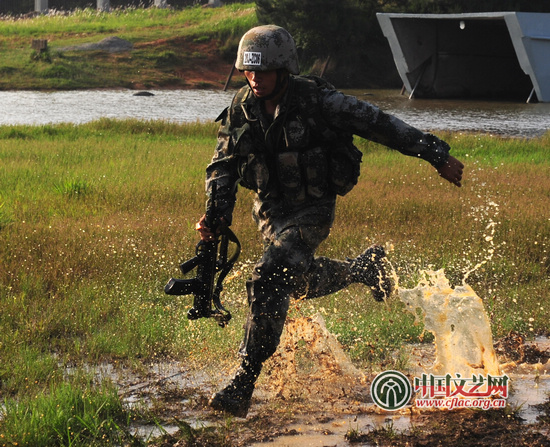 为在规定时间内到达指定地域,队员们穿丛林、涉浅滩,克服各种困难。 岱天荣摄