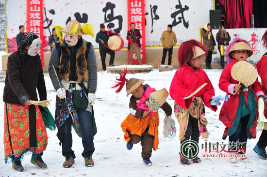 “场地踩台”表演“凤凰三点头”最小把式传承人只有3岁。 王振成 摄