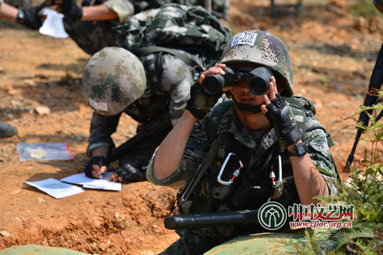 战斗班组分工协作,搜索、判断敌重要军事目标,并利用网格坐标确定目标位置。 岱天荣 摄