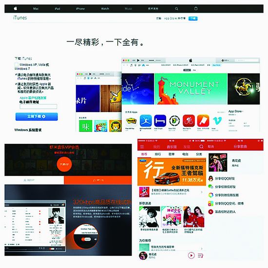 iTunes截图(上)、虾米音乐VIP会员收费(中)、QQ音乐APP截图(下)
