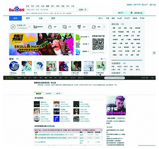 百度音乐网站截图(上)、音悦台网站截图(下)