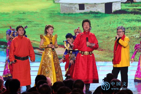 1月20日,“百花迎春——中国文学艺术界春节大联欢”在北京国家会议中心举行。图为胡松华、齐峰、乌兰图雅、呼斯楞演唱《蒙古族歌曲》 中国文艺网 高晴 摄