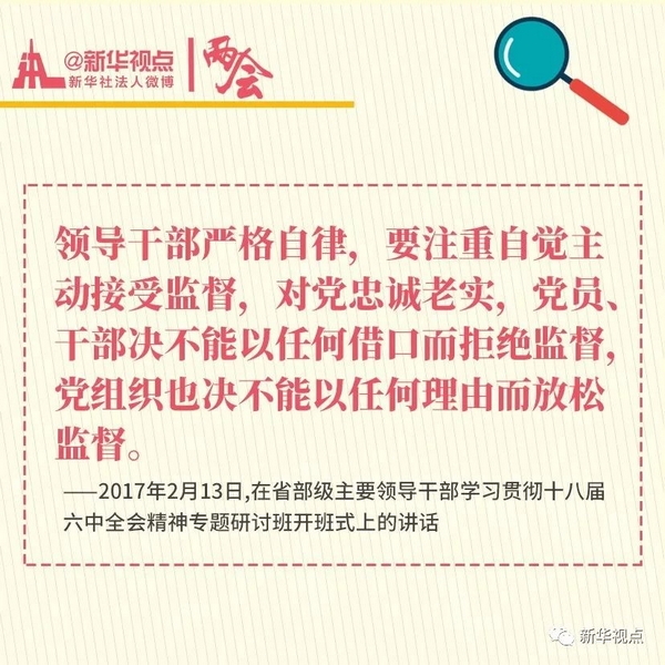 审议监察法草案是今年人代会的一项重要议程。完善我国监督体系,既要加强党内监督,又要加强国家监察。习近平总书记这些年关于加强监督的那些话,一起来学习!