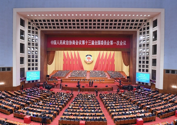 3月14日,全国政协十三届一次会议在北京人民大会堂举行第四次全体会议,选举政协第十三届全国委员会主席、副主席、秘书长和常务委员。新华社记者 燕雁 摄