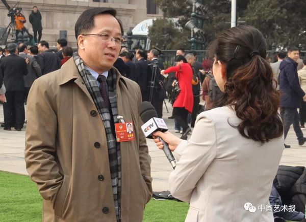 3月3日,中国人民政治协商会议第十三届全国委员会第一次会议在北京人民大会堂开幕。图为全国政协委员王黎光在“委员通道”接受采访。中国艺术报记者 金涛 李博 摄