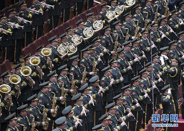 3月3日,中国人民政治协商会议第十三届全国委员会第一次会议在北京人民大会堂开幕。这是军乐团在演奏。 新华社记者 王晔 摄