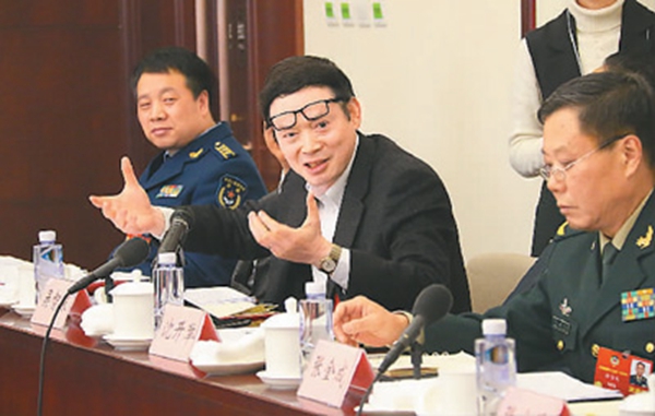 3月5日,全国政协教育界别举行小组会议,讨论政府工作报告。图为吴智深委员(左二)在会上发言。人民日报记者 史自强摄