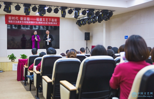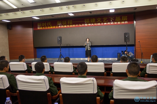 为深入宣传贯彻习近平新时代中国特色社会主义思想和党的十九大精神,大力弘扬乌兰牧骑的优良传统,3月13日至14日,福建省文艺志愿者艺术团组织“新时代 新征程——福建文艺下基层”文化进万家慰问演出活动,走军营、进企业,带着党的声音和关怀,带着春的气息,将党的十九大精神润物无声地送到广大基层官兵和群众心中。