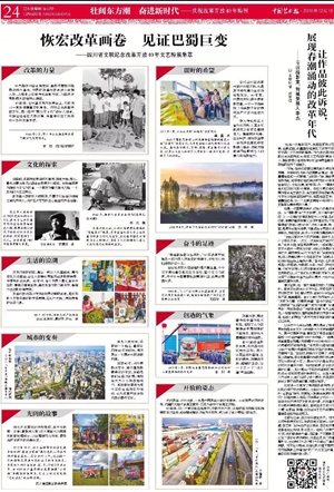 向阳公社率先摘牌、山村农民领取“林权证”、一批年轻人发起“长江漂流”壮举、成都火车站迎来第一拨民工潮、宜宾市纳溪县服装厂工人在车间里生产、遂宁市步云乡“直选乡长”、“超女”接听热线电话、汶川大地震中部队官兵搭建人梯抢运伤员和受困群众……一幅幅摄影作品串起四川城乡变迁、社会发展的火热气氛、感人画面,也带出了昔日熟悉的记忆:热闹的农贸市场、街头上的广告推销、坐三轮车拿“大哥大”的时髦派头、结婚时要求的“三转一响”和彰显体面的“凤凰牌”“永久牌”自行车等等。