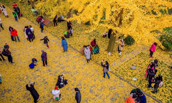 2017年,银杏树下。 禹逢林 摄(选自:四川省文联庆祝改革开放40周年文艺特展)