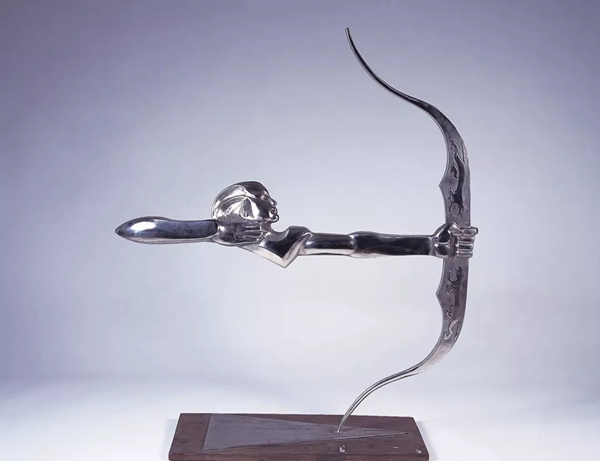 《11千钧一箭》雕塑 (不锈钢 高97cm ) 朱成 (选自:四川省文联庆祝改革开放40周年文艺特展)