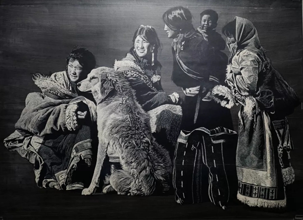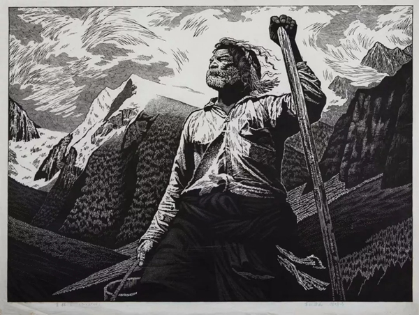 《育林人》黑白木刻 其加达瓦(选自:四川省文联庆祝改革开放40周年文艺特展)