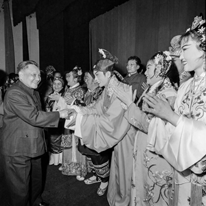 1978年2月,小平同志在成都观看川剧并接见了所有演员 李煊 摄(选自:四川省文联庆祝改革开放40周年文艺特展)