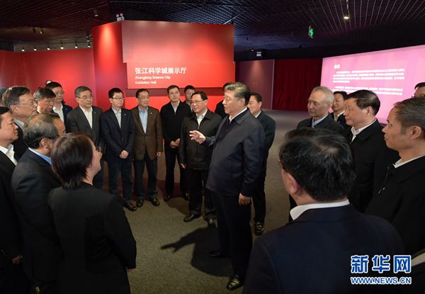张江科学城作为上海科创中心核心区和国家级科技高地,集聚了一批大科学设施、科学平台和一流创新型院所。在展示厅,习近平听取科学城发展历程及规划建设情况介绍,参观了大科学设施、集成电路、航空航天、生物医药等展区。习近平同在场的科技工作者亲切交谈,他强调,科学技术从来没有像今天这样深刻影响着国家前途命运,从来没有像今天这样深刻影响着人民生活福祉。在实现中华民族伟大复兴的关键时刻,要增强科技创新的紧迫感和使命感,把科技创新摆到更加重要位置,踢好“临门一脚”,让科技创新在实施创新驱动发展战略、加快新旧动能转换中发挥重大作用。要认真落实党中央关于科技创新的战略部署和政策措施,加强基础研究和应用基础研究,提升原始创新能力,注重发挥企业主体作用,加强知识产权保护,尊重创新人才,释放创新活力,培育壮大新兴产业和创新型企业,加快科技成果转化,提升创新体系整体效能。要以全球视野、国际标准推进张江综合性国家科学中心建设,集聚建设国际先进水平的实验室、科研院所、研发机构、研究型大学,加快建立世界一流的重大科技基础设施集群。
