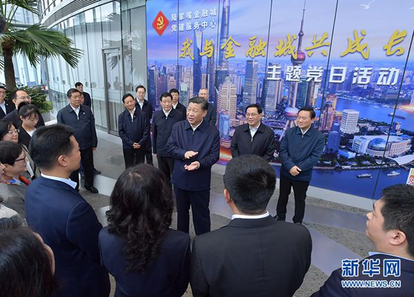 位于陆家嘴的上海中心大厦建筑总高度632米,是已建成的中国第一、世界第二高楼,是上海的一座标志性建筑。2007年,习近平在上海工作期间,十分重视上海中心大厦建设,多次到陆家嘴地区实地调研,亲自研究陆家嘴地区规划,亲自审定上海中心大厦设计方案,推动相关工作,要求把上海中心大厦建设成为绿色、智慧、人文的国际一流精品工程。大厦22层的陆家嘴金融城党建服务中心,是陆家嘴金融贸易区综合党委建立的楼宇党建阵地。6日上午,习近平来到这里,详细了解中心开展党建工作等情况。在党建服务中心的空中花园研讨交流区,3家企业党支部正在联合开展“我与金融城共成长”主题党日活动,习近平来到他们中间,同他们亲切交谈。习近平充分肯定上海从陆家嘴金融城产业集聚、企业汇聚、人才广聚的实际出发,创新党建工作思路和模式,为楼宇内各种所有制企业的基层党组织和党员提供学习指导、管理服务、活动平台的做法。习近平指出,党建工作的难点在基层,亮点也在基层。随着经济成分和就业方式越来越多样化,在新经济组织、新社会组织就业的党员越来越多,要做好其中的党员教育管理工作,引导他们积极发挥作用。基层党建既要发扬优良传统,又要与时俱进,不断适应新形势,拓宽基层党建的领域,做到党员工作生活在哪里、党组织就覆盖到哪里,让党员无论在哪里都能找到组织找到家。希望上海在加强基层党建工作上继续探索、走在前头。我们在有党员的各类企业里建立党组织,目的是为企业的党员提供管理和服务,团结凝聚员工遵纪守法,遵守企业规章制度,发挥党员先锋模范作用。这也有利于企业加强管理,有利于推动企业健康发展。
