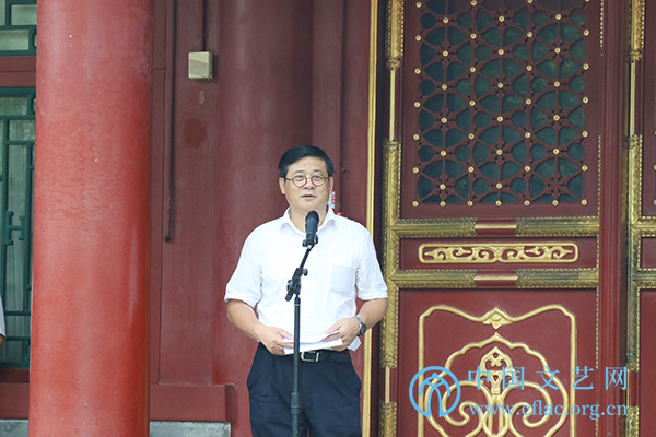 8月8日,由中国美术家协会新文艺群体(组织)展览与推广中心、文化部恭王府博物馆展览活动部、中国国家画院版画院共同主办的“春风春雨中国——庆祝改革开放四十年新文艺群体版画提名展”在文化部恭王府博物馆开幕。图为中国美术家协会分党组书记、驻会副主席兼秘书长徐里致辞。中国文艺网 白伟 摄