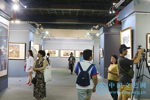 8月8日,由中国美术家协会新文艺群体(组织)展览与推广中心、文化部恭王府博物馆展览活动部、中国国家画院版画院共同主办的“春风春雨中国——庆祝改革开放四十年新文艺群体版画提名展”在文化部恭王府博物馆开幕。图为开幕现场。中国文艺网 白伟 摄