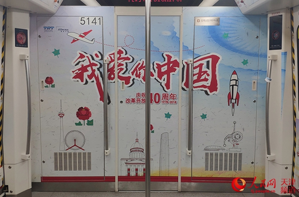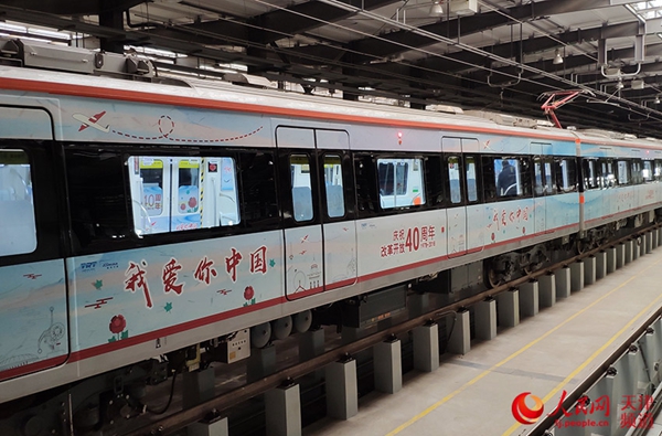 天津轨道交通“庆祝改革开放40周年”主题专列在地铁5号线亮相。乔升华/摄