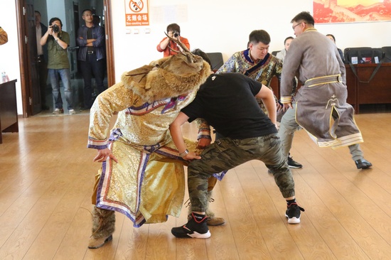 鄂伦春旗艺人为采风团展示民族舞蹈