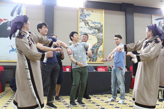 采风团成员与当地民间艺人进行交流